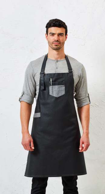 'DIVISION' WAXED LOOK DENIM BIB APRON WITH FAUX LEATHER mennyiség